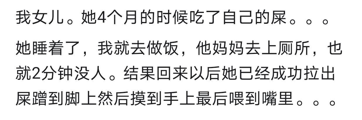 “我亲表弟七八个月的时候也吃过屎 现在我们都40多岁了 每天我都要说他 见不到面的时候,发信息也要说他 我是个有礼貌的人! 这有什么,只有说别人的时候,我是最开心的!”,一位网友评论道。